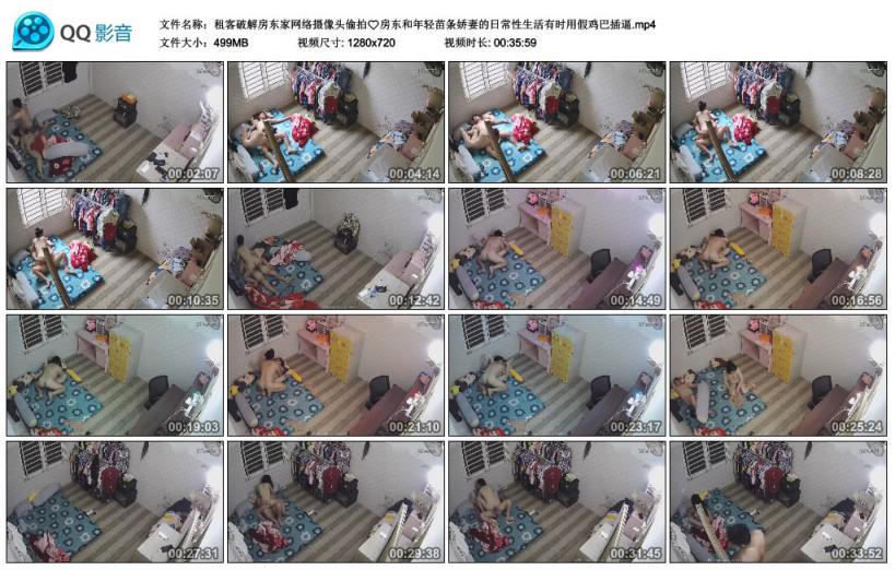 【影片名称】: 租客破解房东家网络摄像头偷拍❤️房东和年轻苗条娇妻的日常性生活有时用假鸡巴插逼【影片格式】:MP4【影片大小】:499MB【影片时间】:00:35:59【影片说明】:无码【影片截图】: